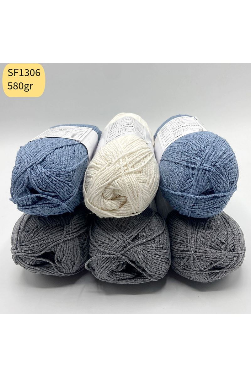Pakette 6 adet yumak bulunur. Yumak gramajları düşüktür. Toplam 580 gramdır. %100 Cotton / Şiş /Tığ: 2,5-4,0 --- DİKKAT: İhrac fazlası üründür, stoklarla sınırlıdır. Resimdeki ürün gelir.